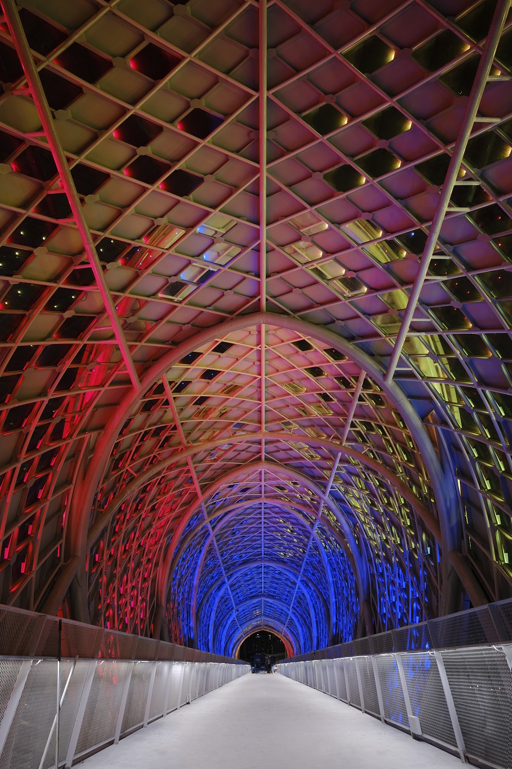 这个独特的设计能够让天桥获得充足的自然光,并且可以在桥上欣赏到Petronas Twin Towers与其他地标建筑所勾勒出的美景。