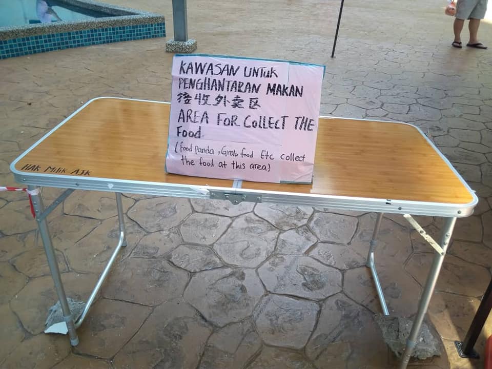 Furthermore, tables on the ground floor have been prepared for food delivery and parcel collection so that residents would not have to be in close contact with the delivery men when collecting their purchases.