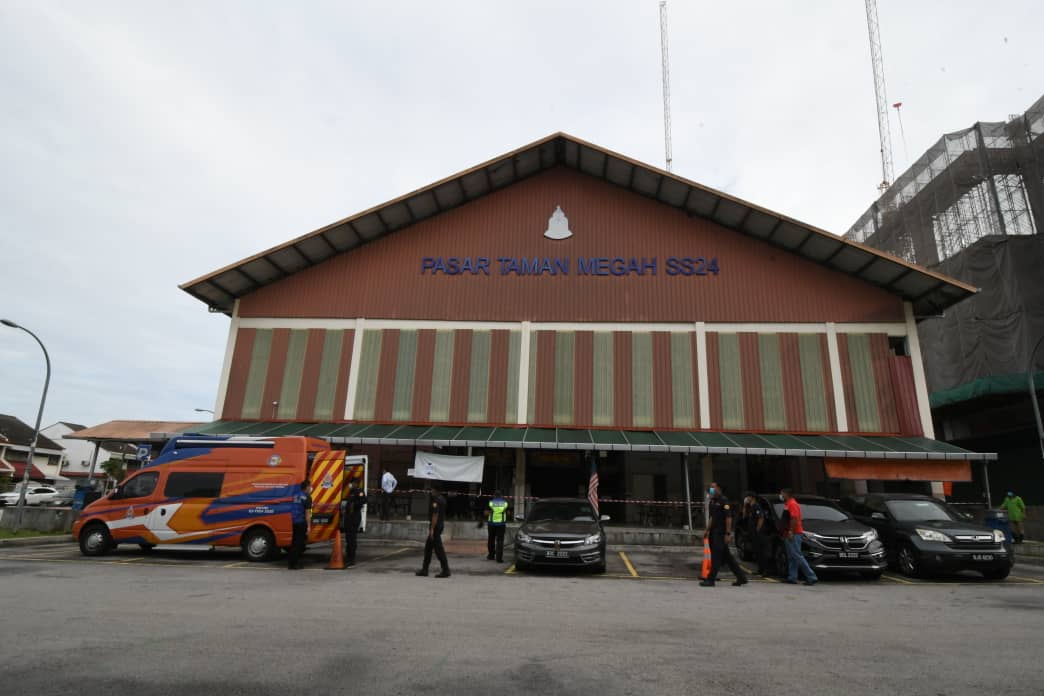 Both the Taman Megah and Jalan Othman (Old Town) markets were recently closed for cleaning and disinfection as traders there were found to have been infected by the Covid-19 virus. Pictured here are some traders in the Taman Megah market going through medical screening.