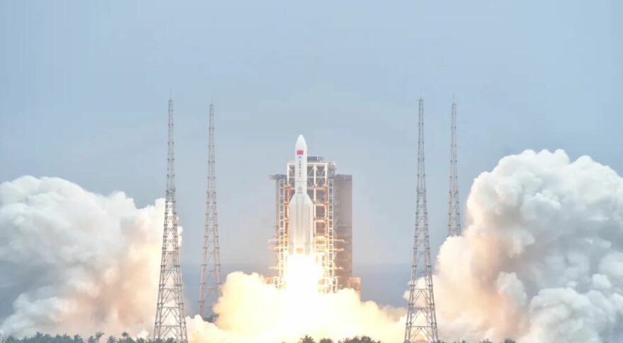 The Long March 5B rocket was launched on April 29 to send the core module of China's Tianhe space station weighing 22,600 kg into its operational orbit in space.