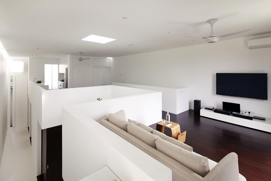 Deliberately designed to be almost zen-lighted, the courtyard opens up right to the roof, “cutting” through the first floor and in the process, offers continuous open space all round.