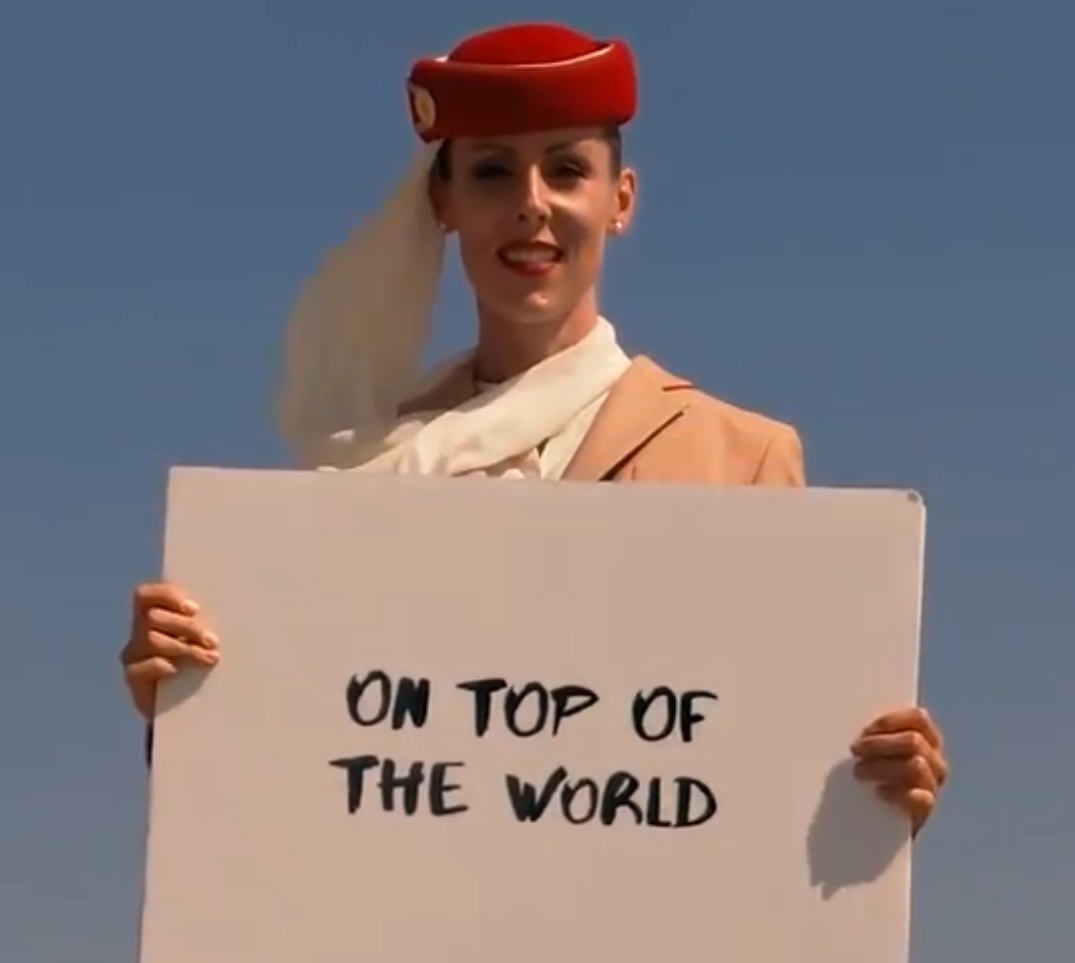 The 30-second clip opens with a close up of the supposed cabin crew holding up message boards, inspired by the famous scene in the 2003 cult hit “Love Actually”.