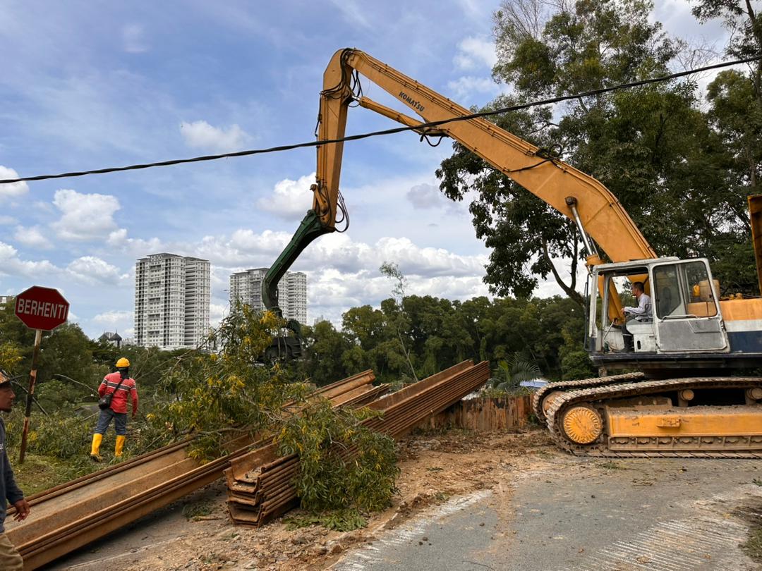 Serdang District Police Chief ACP A. A Anbalagan said work to install the 375 iron piles in the 150-meter area started at 4 am today.