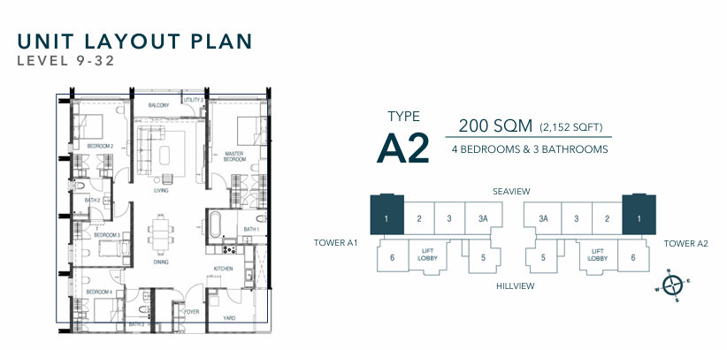 Type C – 2,100 – 2,195 sq ft (4 Bedrooms, 3 Bathrooms)
