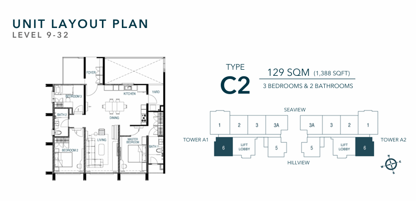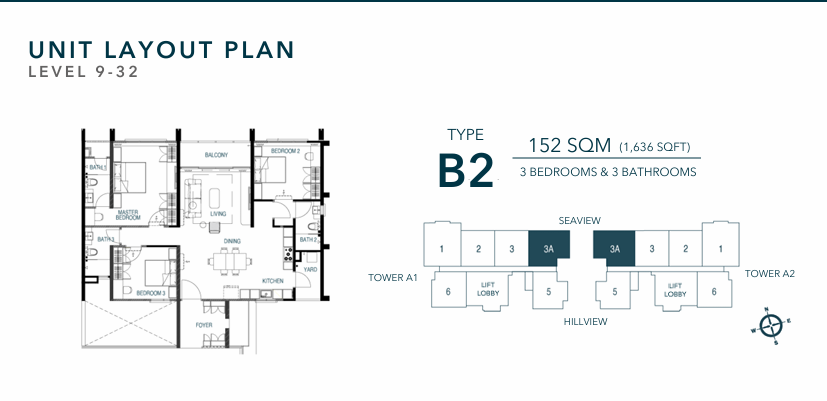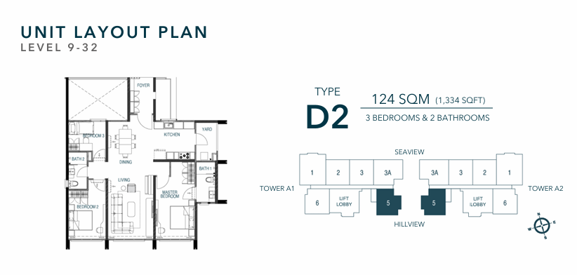 Type A – 1,334 sq ft (3 Bedrooms, 2 Bathrooms)