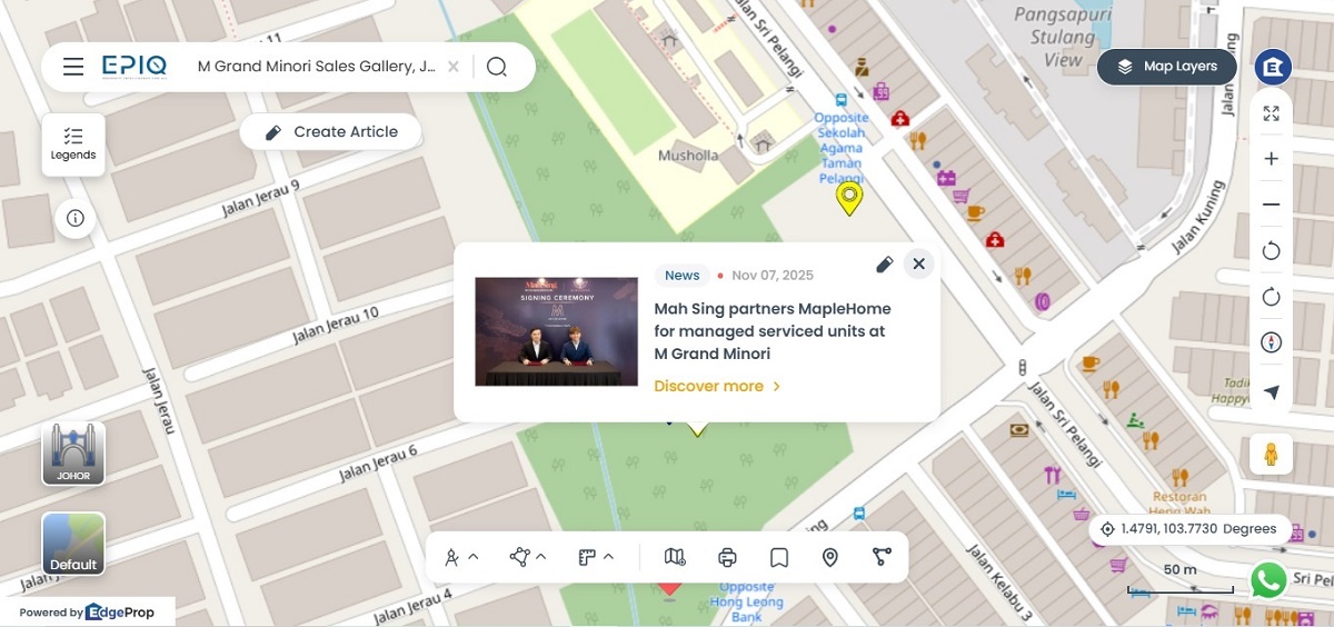 Hor added, “We are delighted to partner with Mah Sing, one of Malaysia’s leading developers, to introduce professionally managed serviced units within M Grand Minori. The project’s strategic location in Taman Pelangi, close to the RTS Link and surrounded by mature amenities, positions it perfectly for cross-border commuters and travellers. Together, we aim to deliver hospitality experiences that blend comfort, convenience, and technology.”
