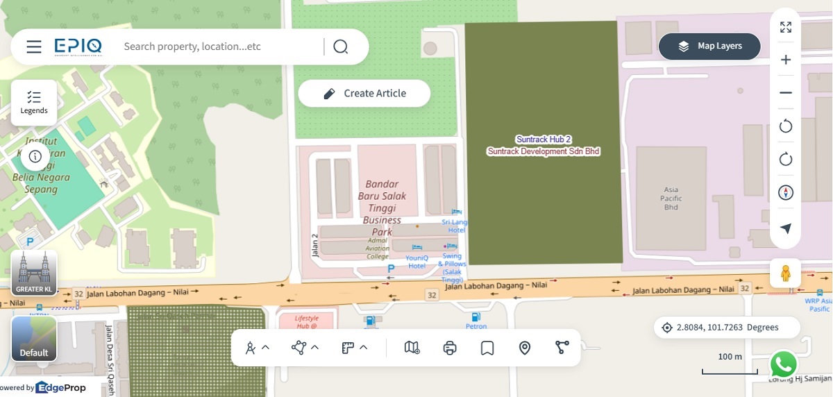 Situated within the Bandar Baru Salak Tinggi industrial corridor, the site is approximately 10km from the Bandar Serenia toll of the Elite Highway.