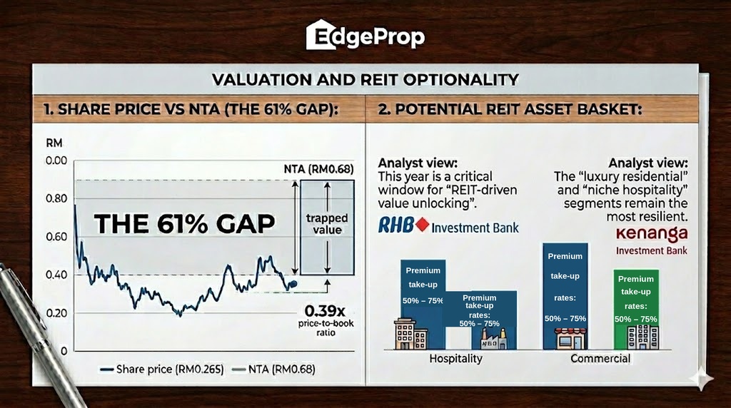 On value unlocking: RHB Investment Bank has identified this year as a critical window for "REIT-driven value unlocking", noting that developers with mature hospitality portfolios—much like Berjaya’s—are primary candidates for restructuring. This strategy is increasingly viewed by analysts as a necessary tool to bridge the steep 61% gap between current share prices and the group's tangible asset value.