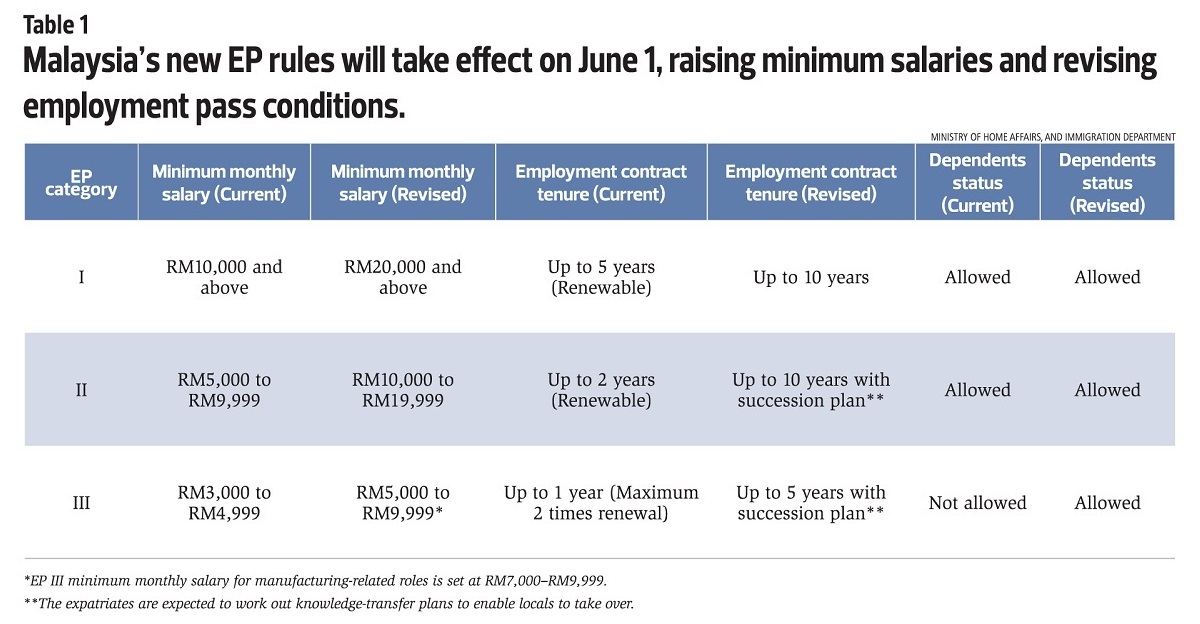 However, instead of unspecified renewable terms, the new EP will be capped at 10 years for Tier II (RM10,000–RM19,999 monthly salary), and Tier I (RM20k-and-above monthly salary) (Table 1).